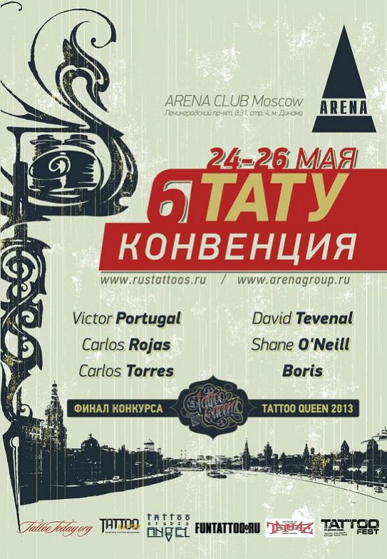 6-ая Международная Тату Конвенция - пройдёт с 24 по 26 мая 2013 года в городе Москва, как и в прошлом 2012 году местом для фестиваля выбран клуб под названием Арена.