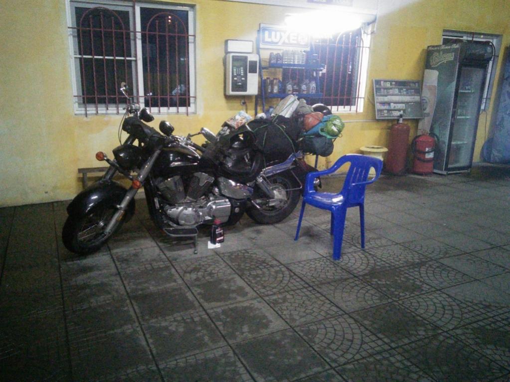 За спиной было всего 2000 км, но у меня немного сломался байк, а именно открутилась система выхлопа, сломав шпильку и вырвав резьбу. С собой я не имел даже обычной отвертки, поэтому сам никак починиться не мог, но мою проблему помогли решить свободные мотоциклисты Ставрополя, к которым меня направил Медведь, у них, на небольшом мото-сервисе меня и починили, спасибо парням за помощь и лично Хохлу (есть у них там свой Хохол).