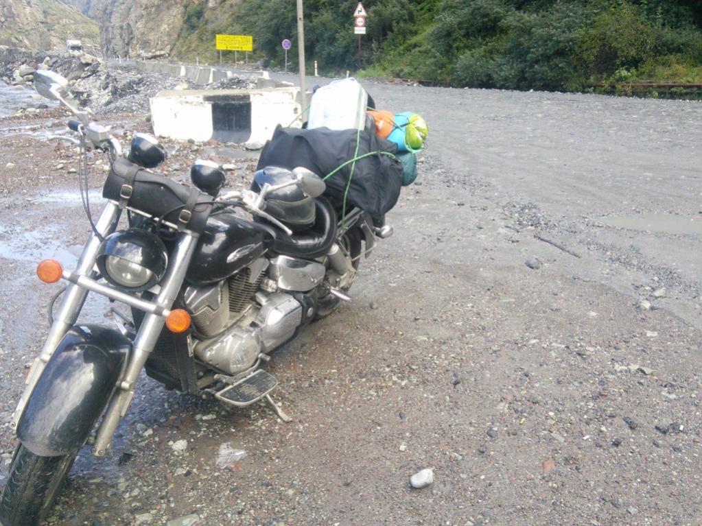 И снова в путь, время примерно 4 часа вечера, пятница 21 августа, я выдвигаюсь в сторону Грузии. На этом отрезке пути впервые и единожды за всю дорогу, я чуть не попал в ДТП, повезло, отделался лёгким испугом, но, видимо, во время заноса, из сумки вылетел наш клубный боевой топор. Жаль, что я сразу не заметил потери. К 9 вечера я был уже во Владикавказе, где меня застал сильный ливень, от которого я спрятался на заправке, на ней я и просидел 8 часов, в ожидании пока закончится дождь, и когда откроется граница. Как оказалось, граница России и Грузии работает не круглосуточно, и на ночь закрывается. На заправке мне выдали стул, и каждый заезжающий заправиться считал своим долгом угостить меня кофе, поэтому этого напитка я напился по самые уши. За то халява) Некоторые приглашали меня в гости, но я решил не принимать эти приглашения, чтобы не баловать себя хорошими условиями, всё таки впереди долгий путь и спартанские ночи. Ох и зря я так... Промерз основательно.