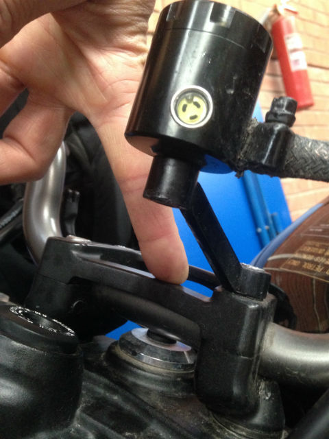 Кронштейн изготовил из дюральки. Он держит компенсационный бачок тормозной жидкости на руле (КЭП). Полировал сам наждаками 3М для "мокрой" работы (финишировал на 2500). Далее грунтовал, из баллона и красил акрилом. Интервалы сушки между слоями и между грунтовкой и покраской - как положено (а не как по инструкции на баллоне) т.е. сушил хорошо.