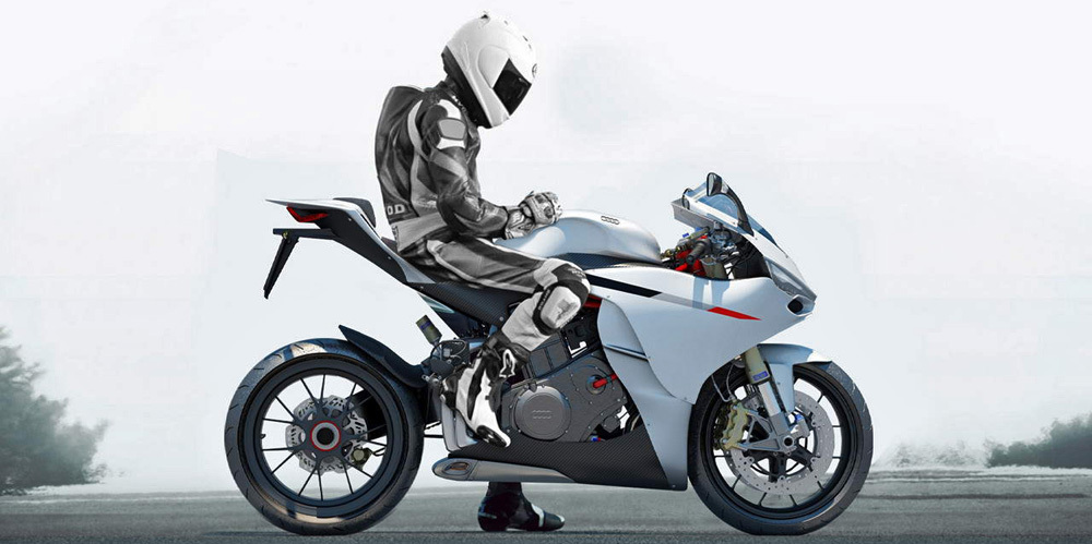 Алессандро запланировал в качестве силовой установки мотоцикла двигатель конфигурации V-4 водяного охлаждения с развалом цилиндров 65° и рабочим объёмом 999 кубических сантиметров. Планируемая мощность мотора — около 190 лошадиных сил. Двигатель будет работать в качестве несущего элемента в паре с лёгкой алюминиевой рамой. Задний маятник будет крепиться непосредственно к картеру двигателя
