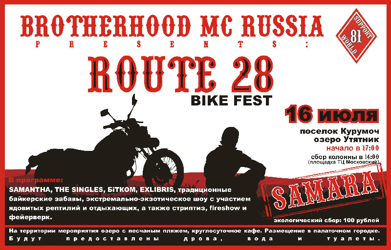 16 июля в Самарской области на берегу озера Утятник состоится второй байк-фест "ROUTE 28"