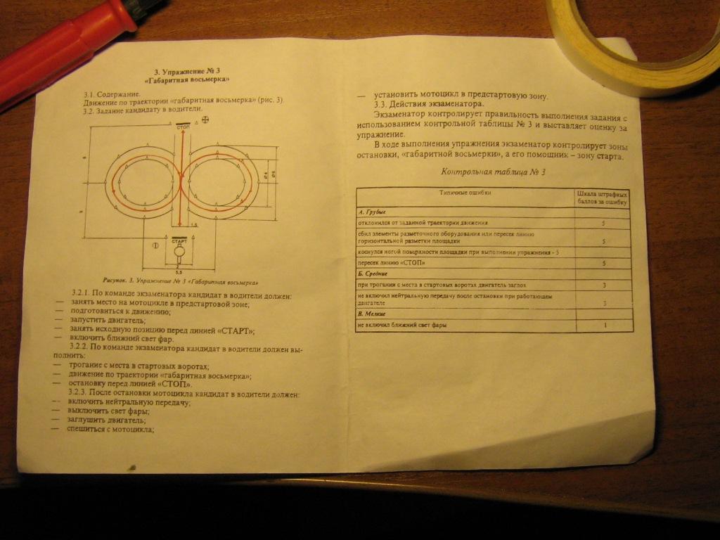 Короче, немного поспорил с гайцем (на приёме документов), он мне показал табличку штрафных баллов, дескать вот - не показал сигнал торможения - штраф стока то баллов. Расстраивать его фактом что это из другого упражнения табличка я не стал, с ними порой спорить бесполезно, а уж если гаец неправ, то он правдами и неправдами будет доказывать свою правоту (несурово признавать что слажал перед мотоциклистом), таки умудрился махнуть рукой (левой) перед торможением после восьмерки. Кроме восьмерки ещё сдавал змейку, причем надо было сдать только змейку. Причем тоже надо было все сигналы показать. Всё-таки сдал, принимаю поздравления