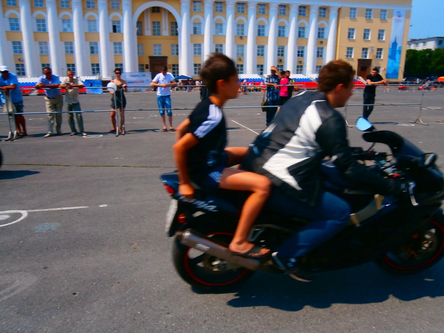 Тем более Мелкая катается зацепившийся за мот на роликах, молодняк посмотрит и будет подражать, со словами на площади вон байкеры катались. Мда....
