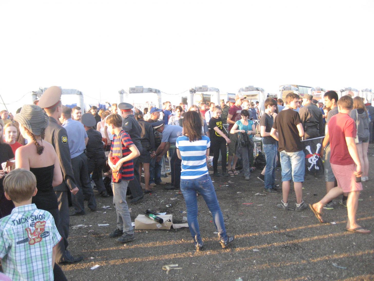 вот не надо.местная полиция выполняла свои обязанности на "5". их даже было жалко.они постоянно патрулировали территорию и следили за порядком(и не только на территории фестиваля,но и в палаточном городке). представь себе,что бы было,если упившаяся толпа почти из 600000 человек полезла бы на сцену или разгоряченная солнцем и алкоголем устроила бы мордобой? нормальных людей кстати там было маловато