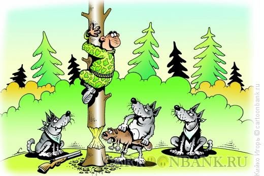 На следующий день выдвинулись в лес пешком. Через каждые 5 минут немцы требовали привала. На 7-м привале я потребовал объяснений. Оказалось, что рюкзаки у немцев полны перца и кирпичей. Избавившись от стройматериалов к обеду мы вышли охотиться на уток. С юмором у немцев оказалось совсем хреново. После трехчасовой бесполезной стрельбы по уткам, я им сказал что или утки высоко летают или низко подбрасывают собаку. И когда в следующий раз над ними взлетели утки, я увидел как собака Михалыча летит к ним на встречу. Глаза у собаки были как блюдца. Утки увидели летящее на встречу животное и стали нестись прямо на лету. Причем неслись утки обоих полов. И собака тоже. Так ничего и не застрелив, мы вернулись в лес и устроили небольшой пикник.