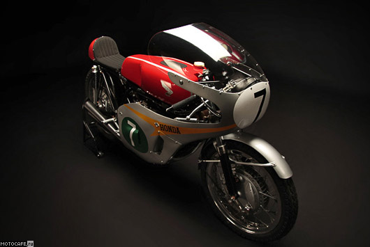 ... и тогда этот мотоцикл действительно осядет в вашей голове как что-то уникальное. Honda RC166 приходил первым на всех 10 гонках Isle of Mann TT 1966 года, конечно не без помощи легендарного Майка Хайлвуда (Mike Hailwood), который умело воспользовался потенциалом этого мотоцикла. Сухой вес в 112 килограмм и максимальная скорость в 240 км/ч сделали этот болид настоящим гоночным оружием, а результаты, которых удавалось достичь компании Honda заставляли конкурентов лишь чесать в недоумении затылок.